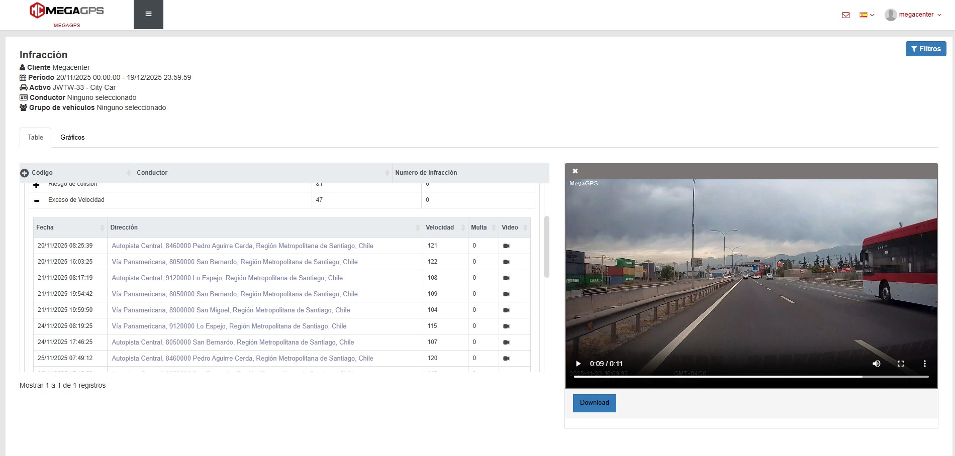 Alertas de exceso de velocidad con respaldo en video.